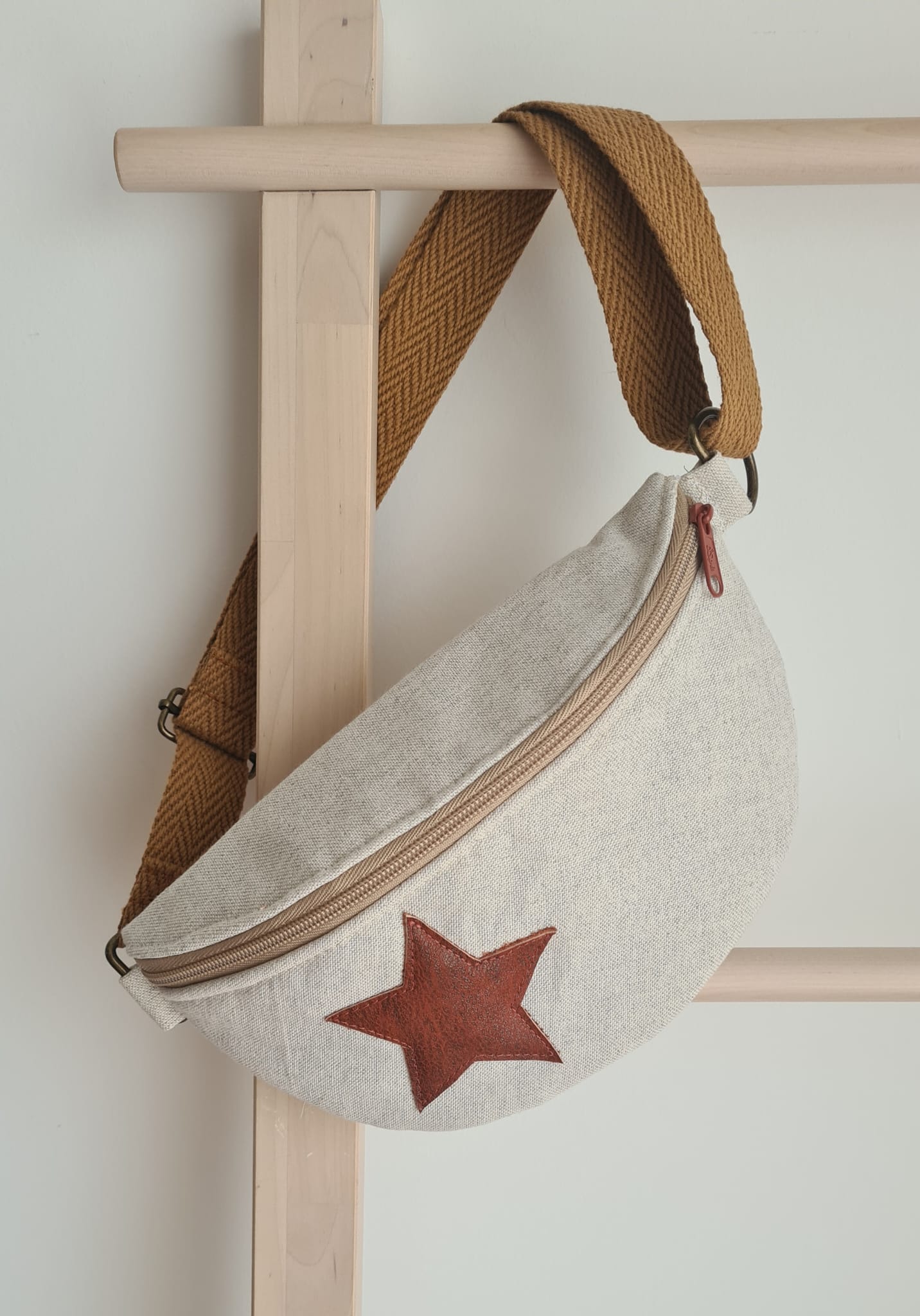Mala a tiracolo em linho, forrada com tecido 100% algodão.