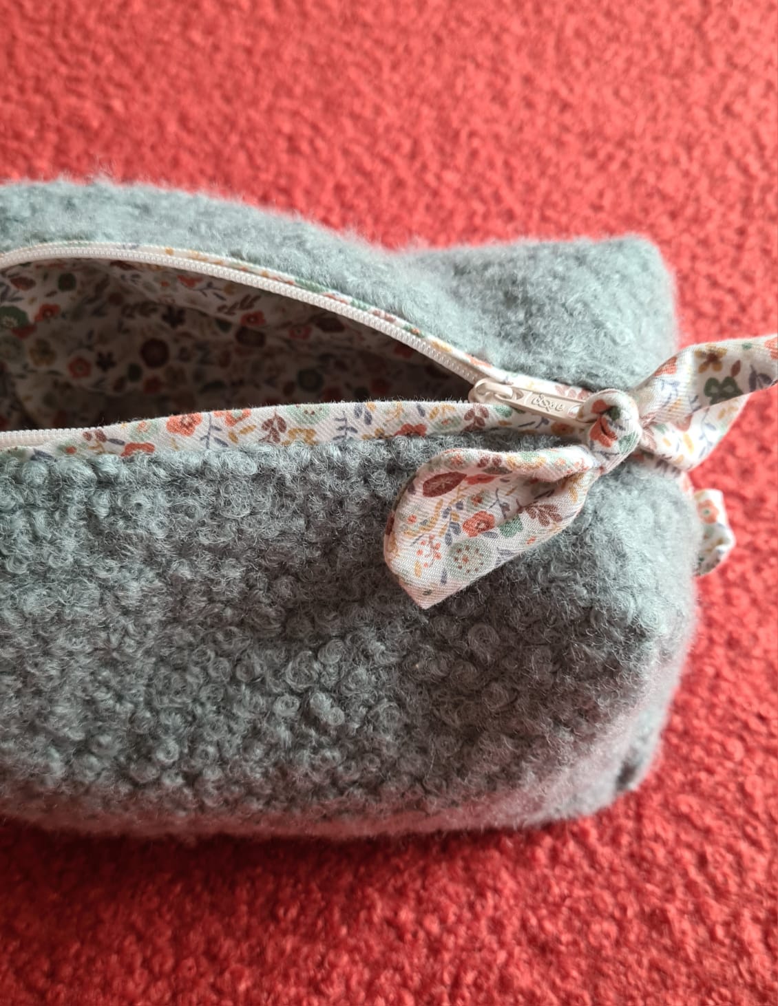 Bolsa retangular feita em bouclé e forrada em tecido 100% algodão.