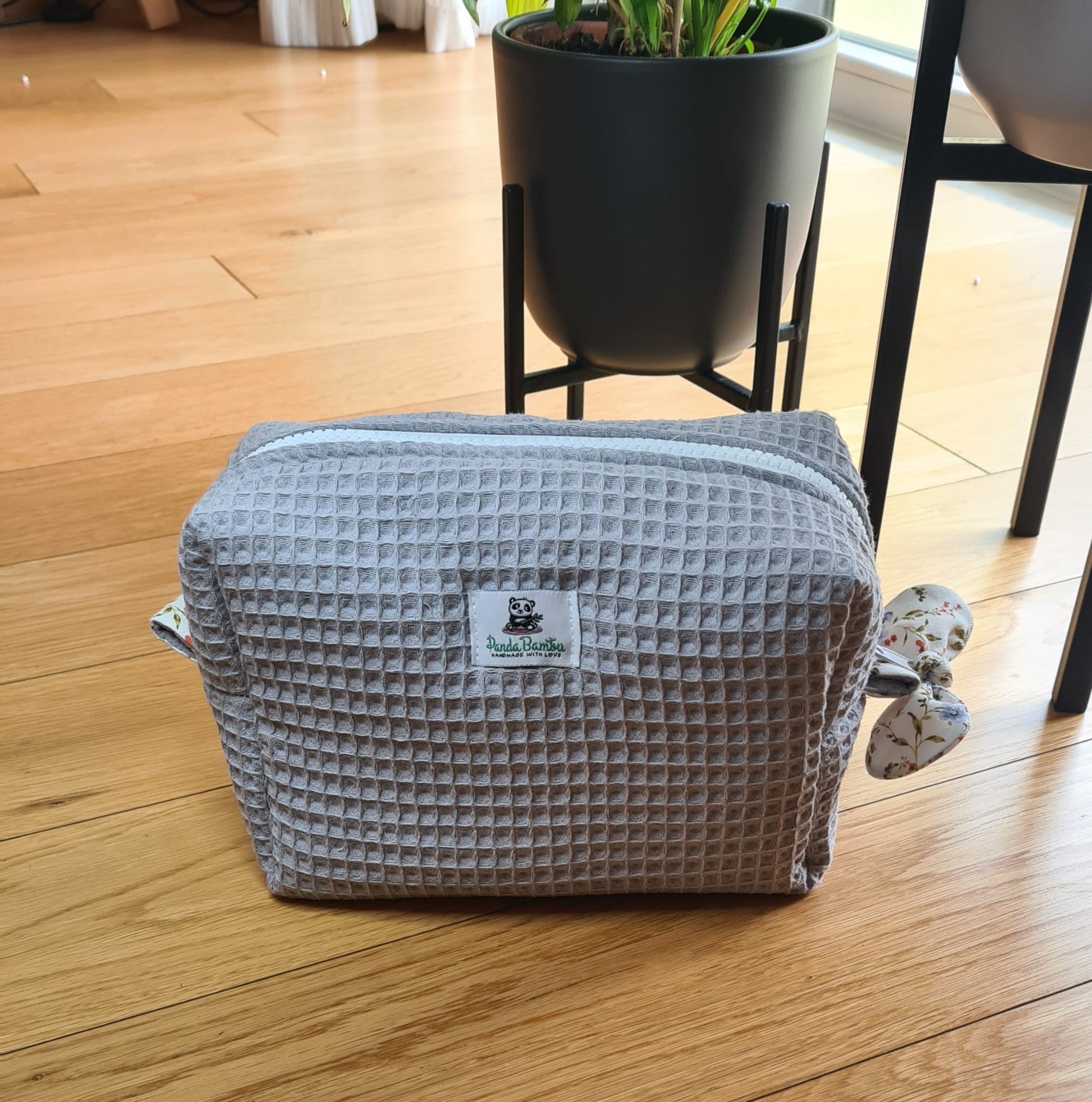 Bolsa retangular feita e forrada em tecido 100% algodão.
