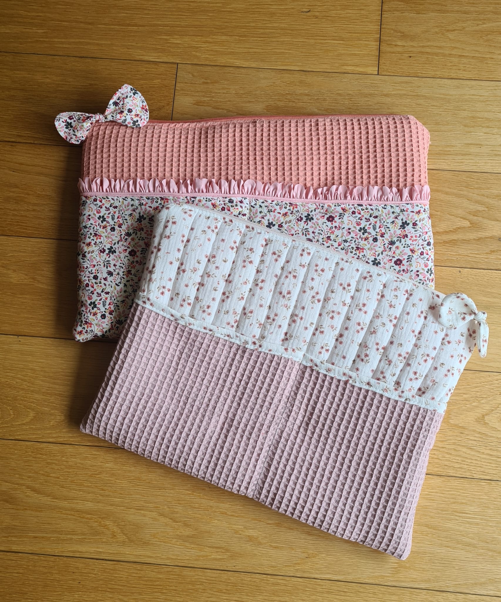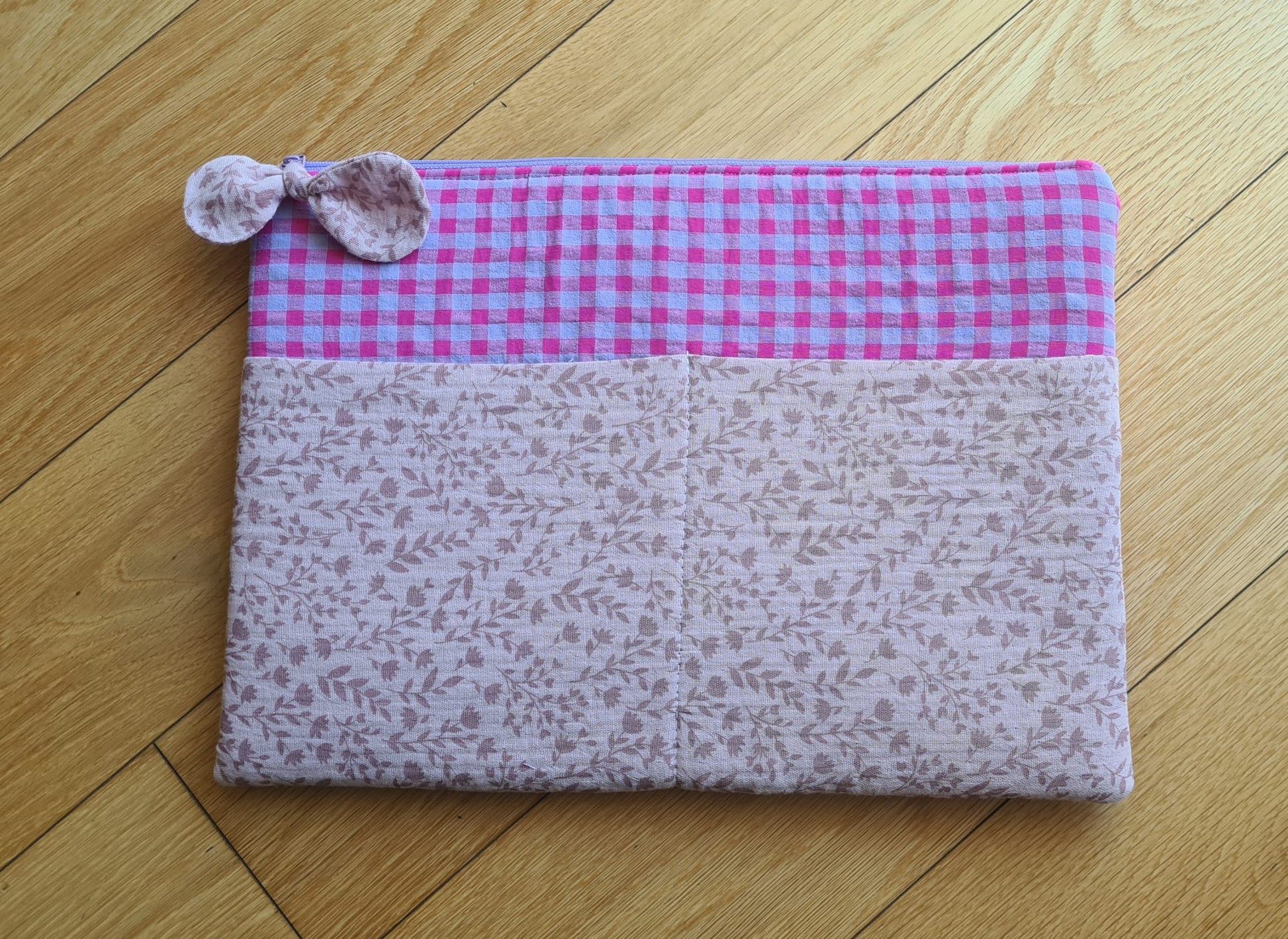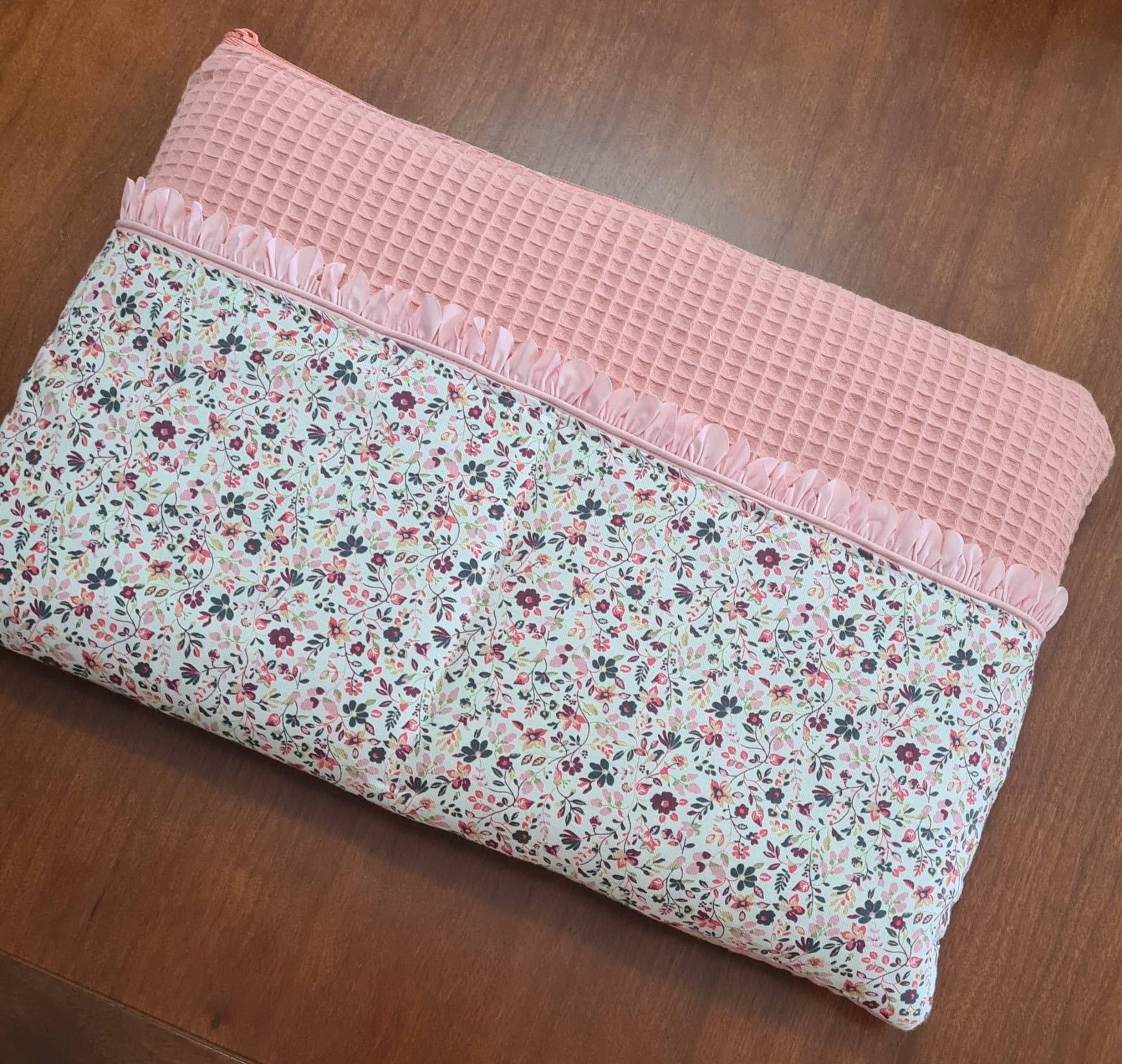 Esta capa para computador portátil é feita em tecido 100% algodão.
